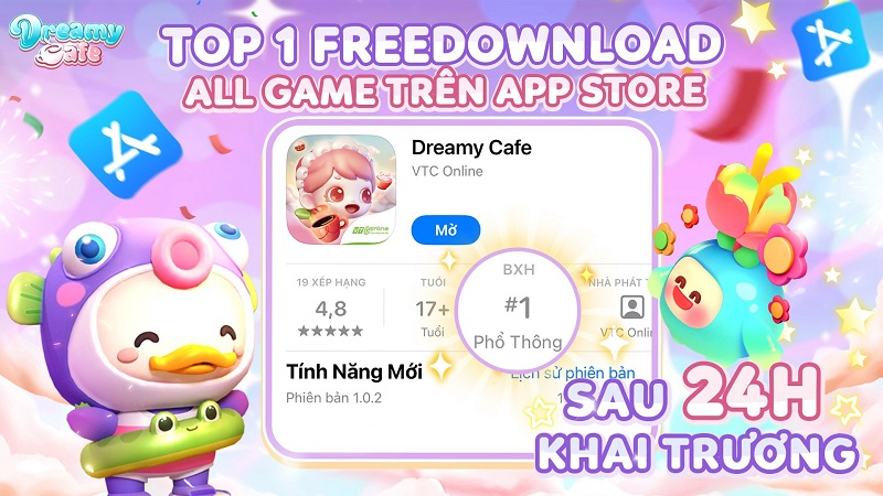 Chỉ trong vòng 24 giờ sau khi mở cửa, game mô phỏng xây dựng và quản lý quán cafe Dreamy Cafe của NPH VTC Online đã lên top 1 App Store.